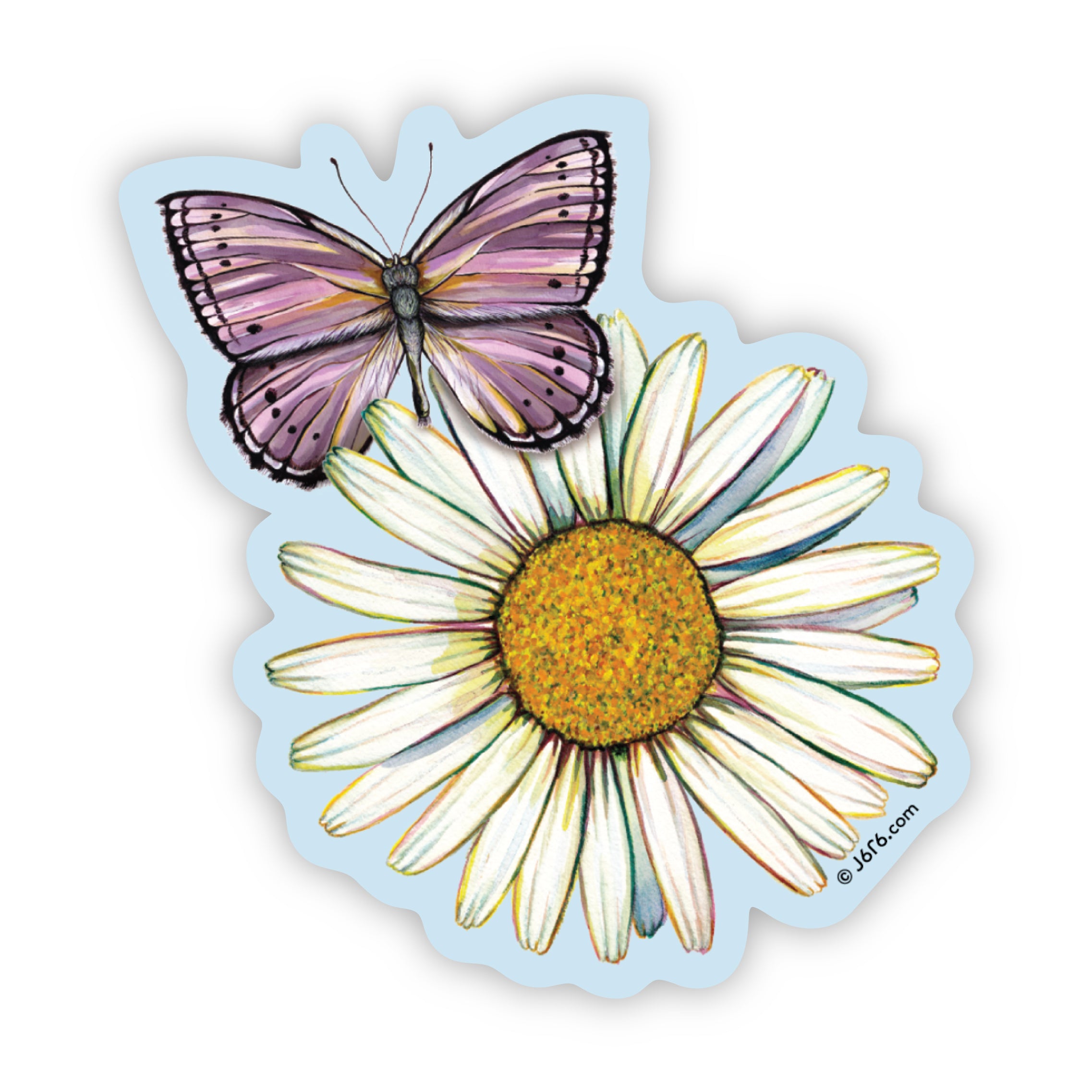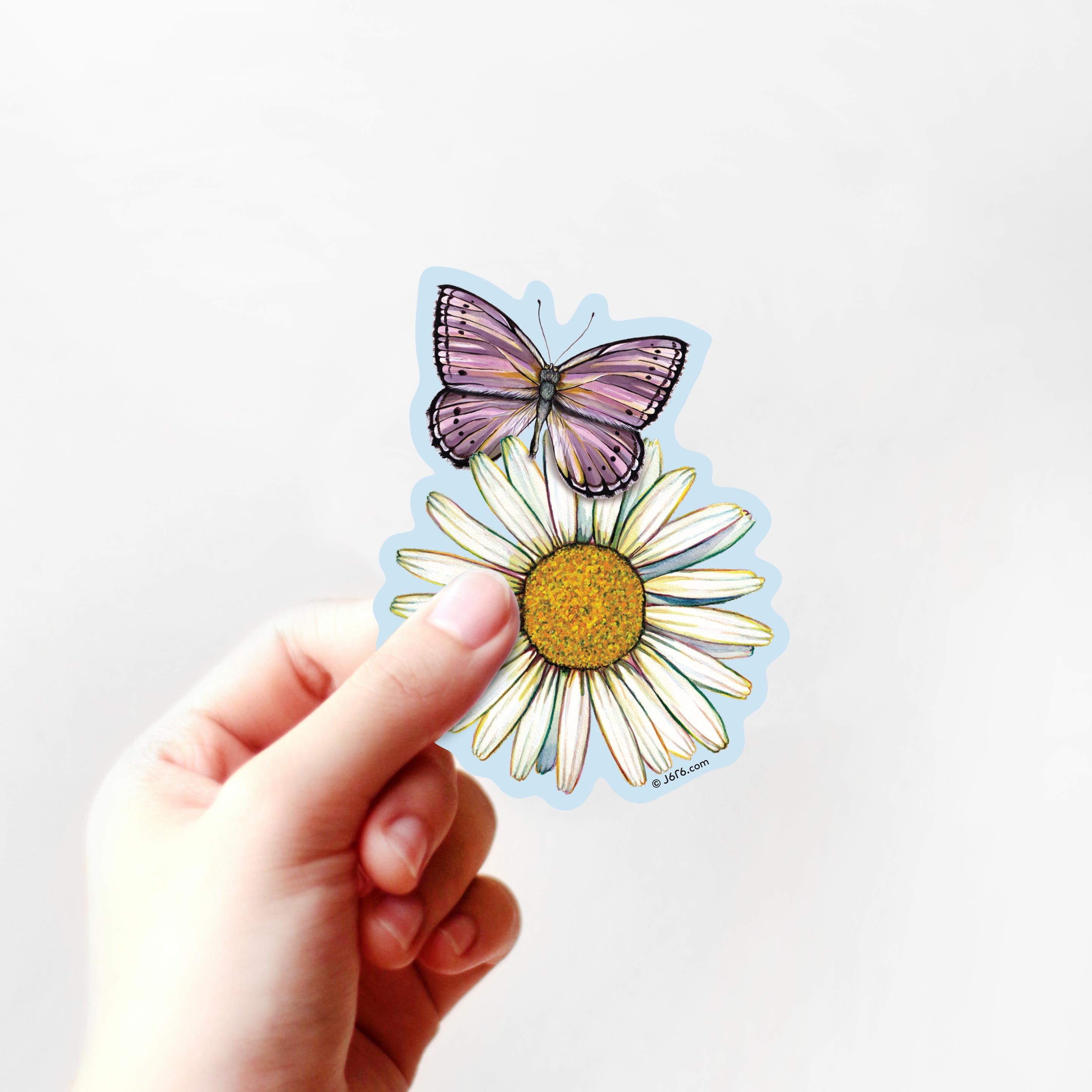 Brighten your day with this Daisy & Butterfly Vinyl Sticker, featuring original J6R6 hand-painted artwork. Colorful, cheerful, and full of personality, this decal is designed to make you smile and add a sunny touch to your favorite items.